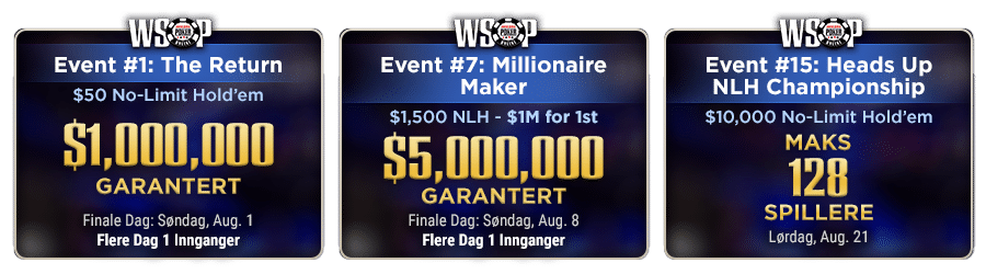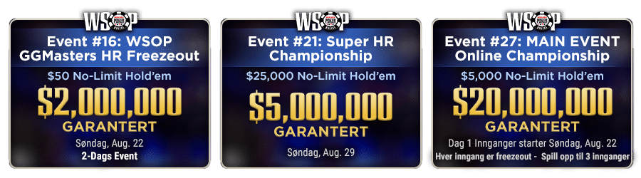 Med 33 WSOP armbånd og MILLIONER i garanterte pengepremier som skal vinnes, starter World Series of PokerⓇ akkurat her hos GGPoker fra 1. august!